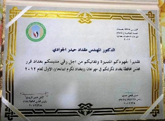 City of Baghdad Shield Winner Awarded by Baghdad Provincial Council in Their First Festival in 2012